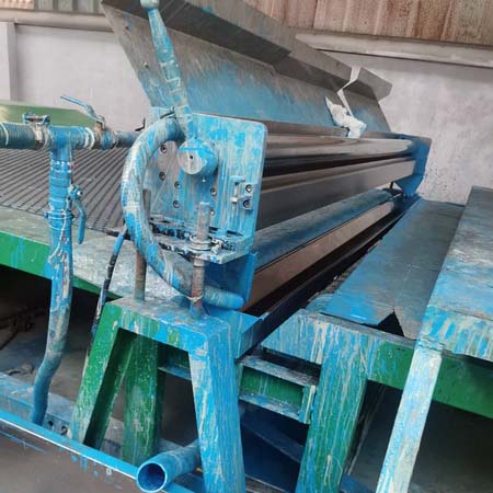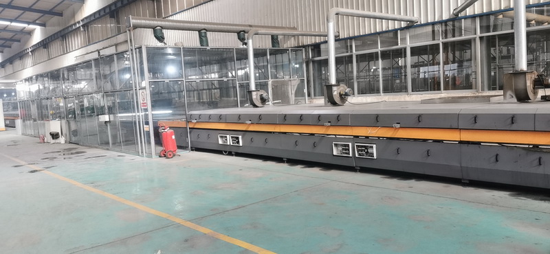 2、双淋漆结构:上片台-----玻璃从底漆淋漆平台经过油漆幕后,玻璃外貌淋上均匀的油漆层----然后进入底漆烘箱进行烘干,烘箱顶上设有抽风机和恒温控制-----烘干出来后进入底洒风冷段进行吹风冷却-----玻璃从面漆淋漆平台经过油漆幕后,玻璃外貌淋上均匀的油漆层----然后进入面漆烘箱进行烘干,烘箱顶上设有抽风机和恒温控制-----烘干出来后进入面漆风冷段进行吹风冷却-再进入酸洗后进行清水清洗-----经过最后冷风吹干----下片台下片或连接自动下片台。